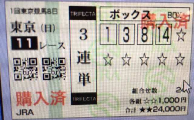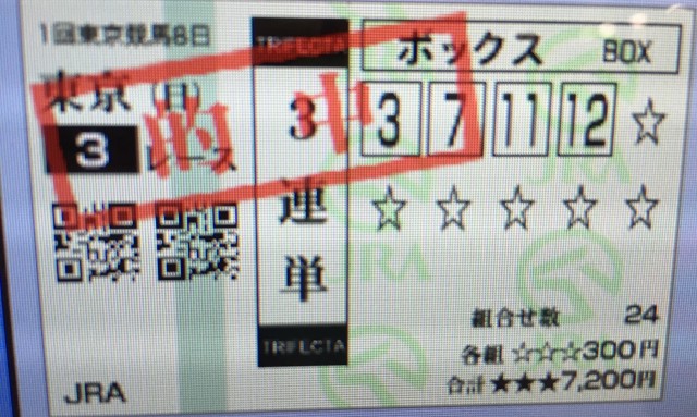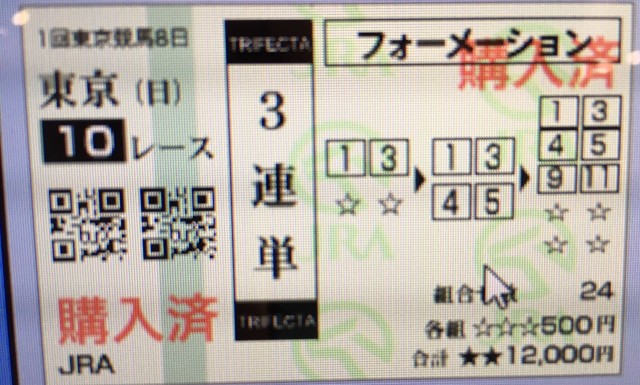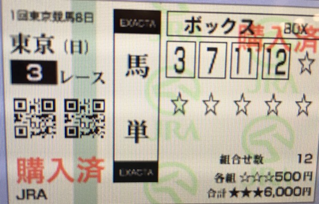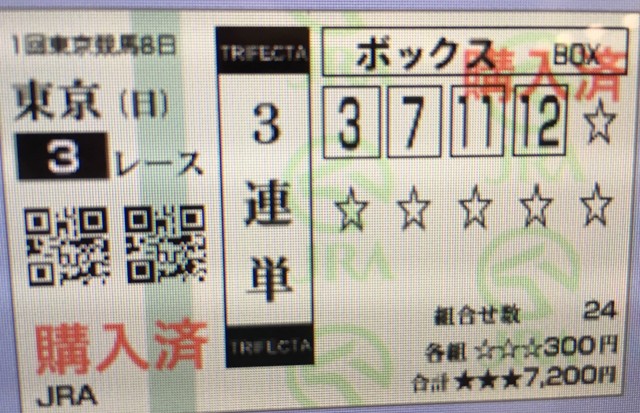 3レース目(東京競馬場)はちょっと自信があったので、少し厚く賭けてみた。すると、どうだろうか。