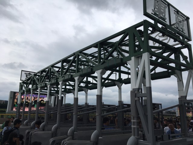 なんとビックリ、ゲートも間近で見ることができるのか。ゲートインして競走馬の気分も味わえるのだが、行列ができていたので今回は断念。