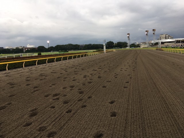 レースが終わった直後というのもあって、まだ競走馬の足跡が残っている。うーむ、生々しい。