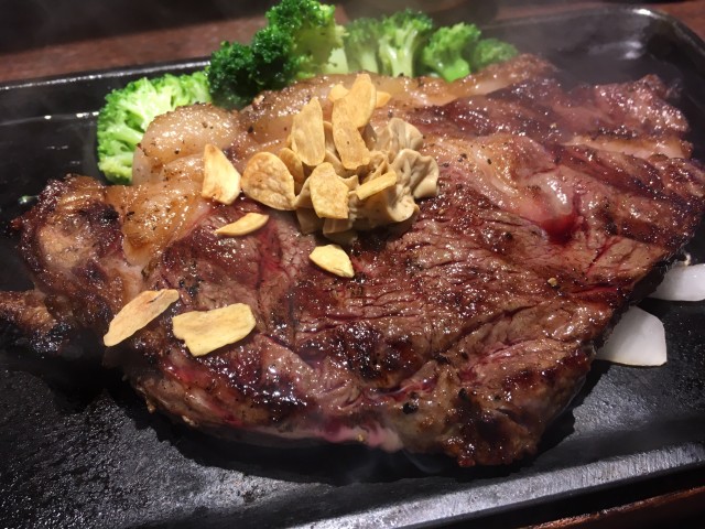 ランチは某ステーキ店。そして、普段は絶対に注文しない「国産サーロインステーキ」をチョイス。1グラムあたり12円(税抜き)と大盤振る舞いだ。誕生日なのだから、これぐらいの贅沢は許されるだろう。