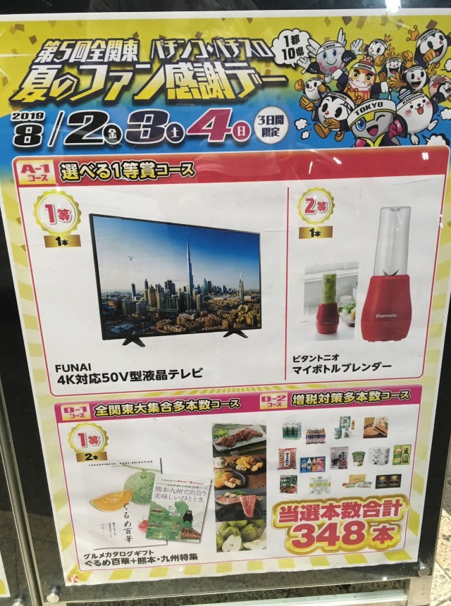 今年は「全関東パチンコ・パチスロ夏の大感謝祭」の最終日だ。