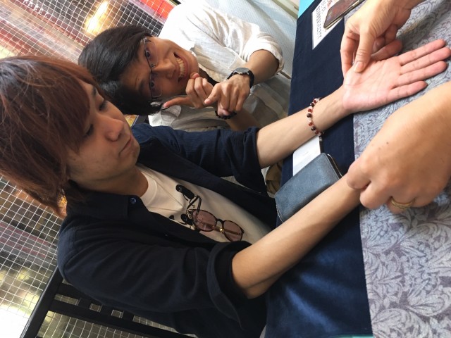 中華街に着たら、まずは占いだ。勝負事に占いは不可欠。私とKEN蔵氏はイベントに参加しないが、ついでに手相を診てもらった。