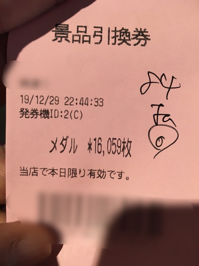 時計を見ると、昼の3時半。時間はまだまだ余裕がある。どう考えたって、閉店取り切れずなんて起きるハズはない。今回はしっかりと取り切れるぞ。バイバイ、未練。やったぞ、今日は最高の打ち納めだ。