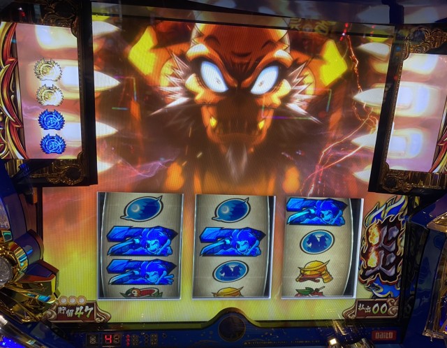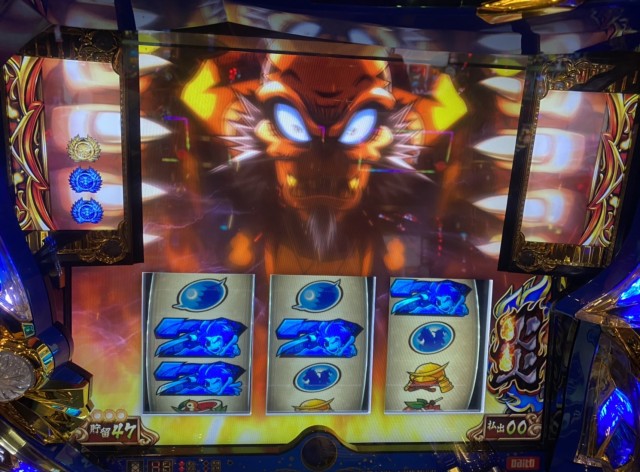 ガンガンに青7が揃う。もちろん、青7がいっぱい揃っていけば
