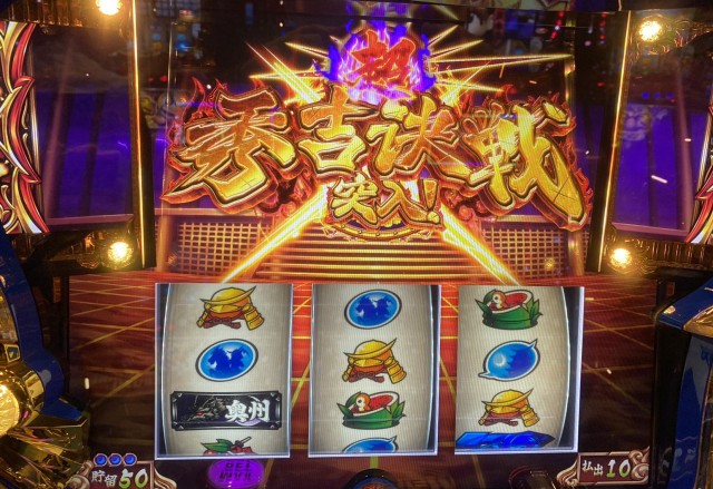 撤去されるまでまだまだ時間はあるので全ツッパとか無茶なことはせず、決戦ポイントが貯まっていそうな台をチョイスして秀吉決戦に突入するまで打つことにした。