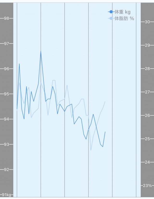 パチスロだったら発狂しそうな緩やかな右肩下がりで体重を落としてきたのにストップ。