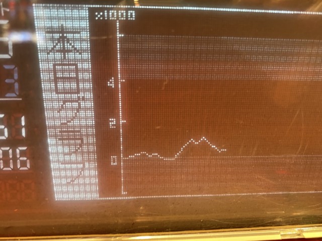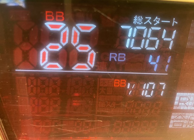 ちなみにこの機種を選択した理由は、前日ぶん回されていてボーナス合算確率が約1/107と高設定の数値だったので、