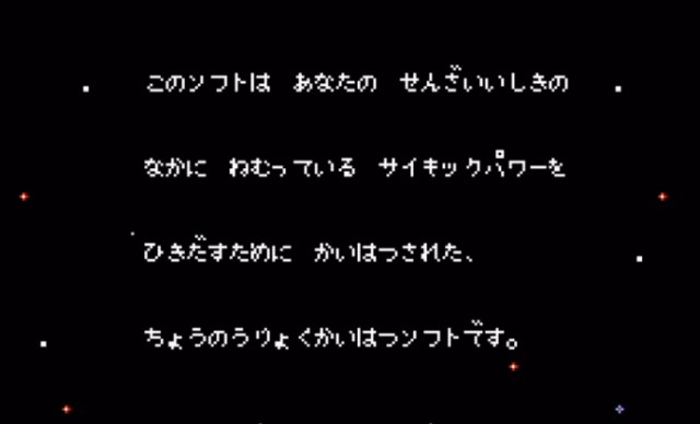 超能力者開発ソフト『マインドシーカー』で超能力(透視・念力・予知)の特訓。