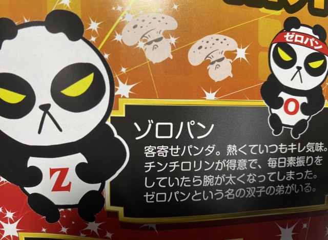 客寄せパンダ。熱くていつもキレ気味。チンチロリンが得意で、毎日素振りをしていたら腕が太くなってしまった。ゼロパンという名の双子の弟がいる。