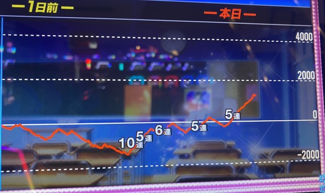 急にボーナスも引けるようになり、逆転の狼煙が上がった。もちろん、1000枚あってもまだマイナスだが、完全に流れが来ていた。