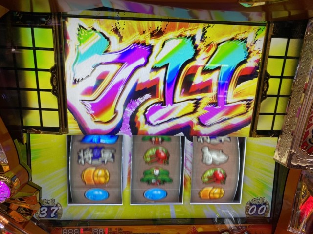 打ち始めて100Gも回さずに目的の演出が発生した。もちろん、ここでヤメることなく続行。昨年はあまりパッとしない戦績で終わったが、今年は違う。そんな予感を年明けから感じていたので、自分の勘を信じて続行。