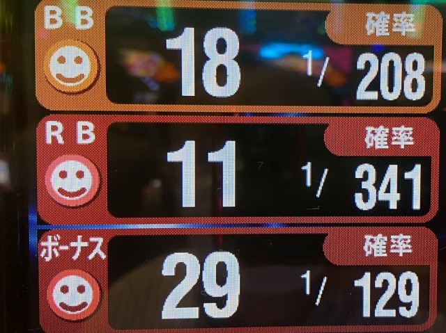 設定差のあるREGの出現率は1/265と設定6以上(1/376.6~1/310.6)。また、設定差はないもののBIGもイイ感じに引けていて流れも良い。