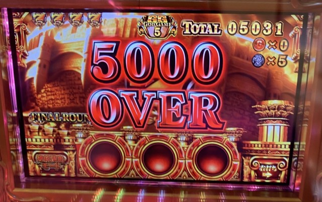 数ある難関を突破してGOD SPOTに入賞すれば、1000発(払い出し)×5セットの大当りをゲットできる。さらに初当りの約1/5で5セット上乗せできるらしい。当たれば5000発(払い出し)が約束され、一撃1万発も狙える。そんな“GOD”の名に相応しいマシンだ。