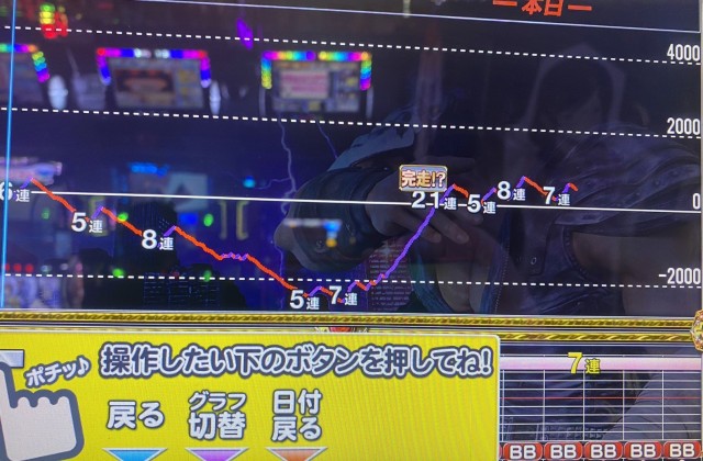 まさかまさかの設定5・6が確定。こうなったら予定は変更、買い物より設定5・6のほうが優先だ。目の前の台に集中して、私は一心不乱にレバーを叩き続けた。