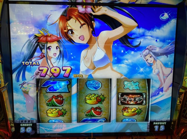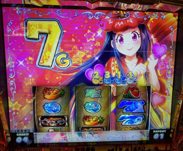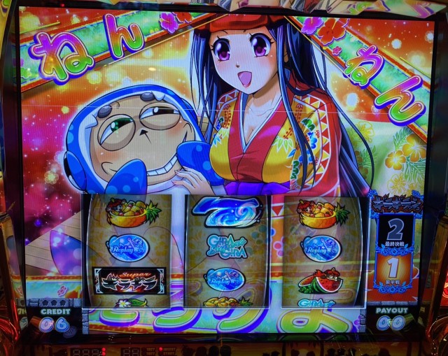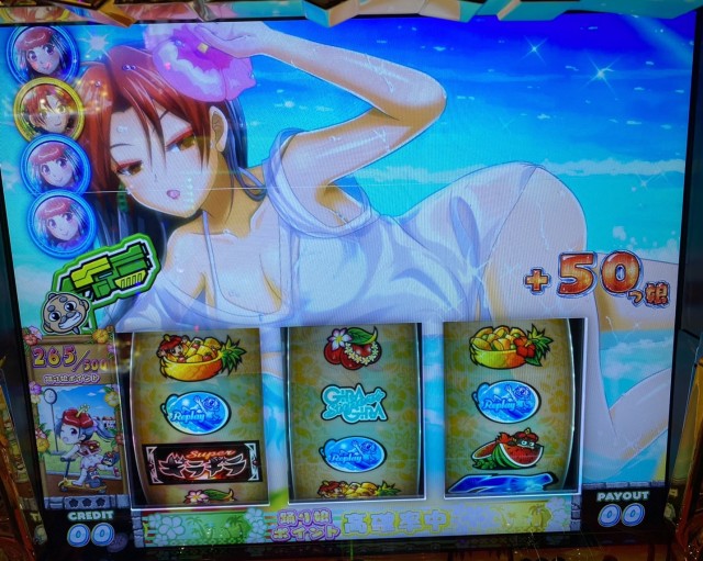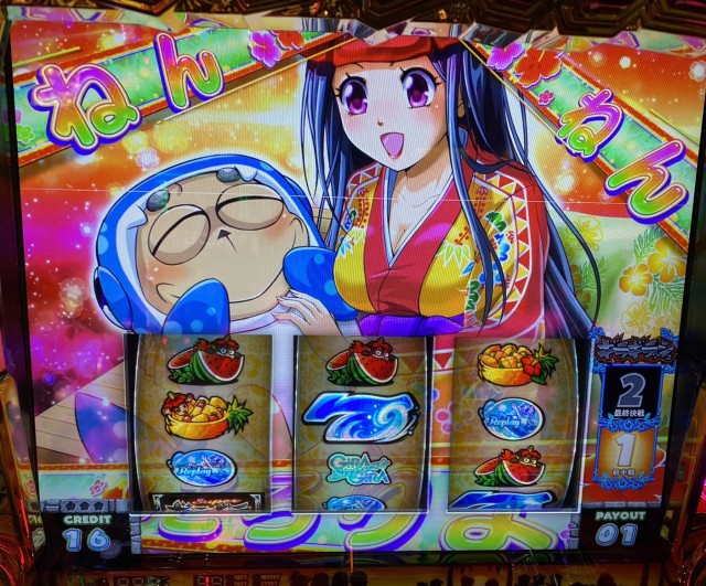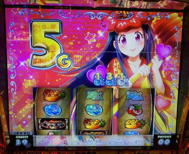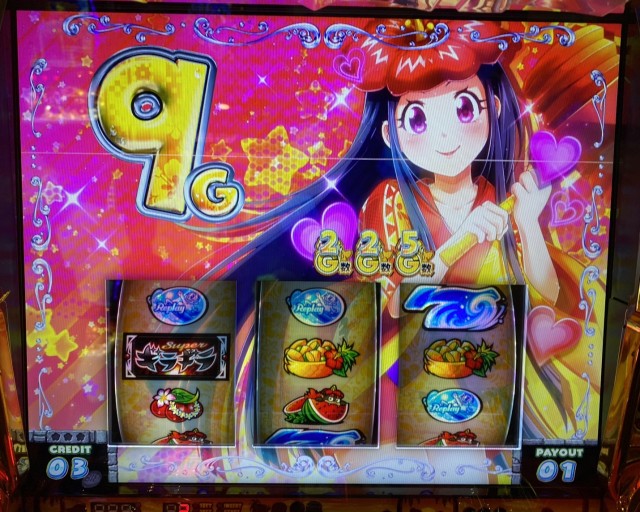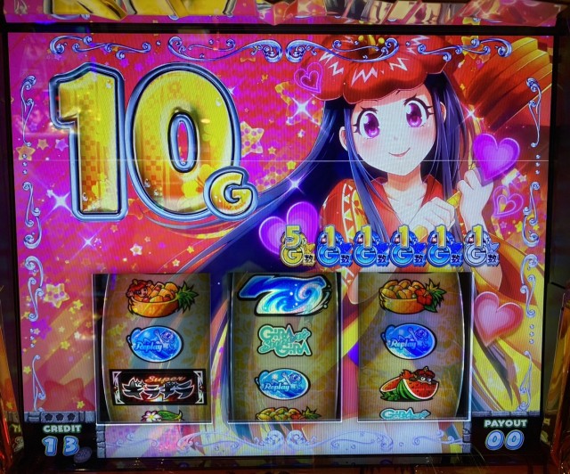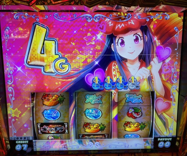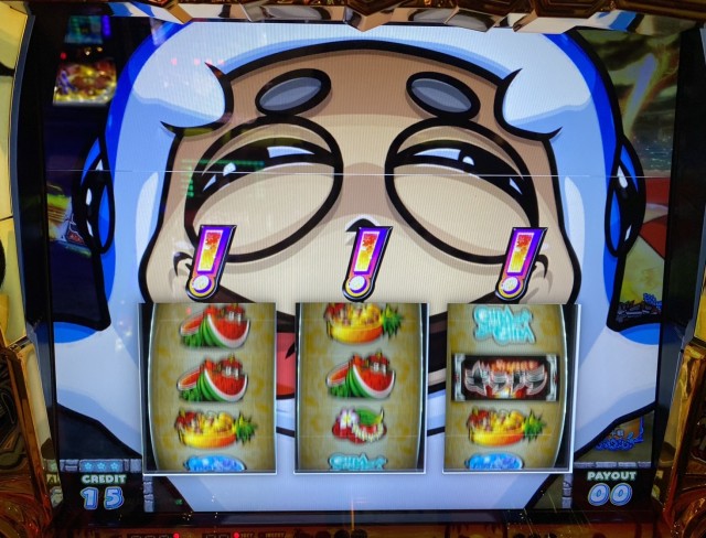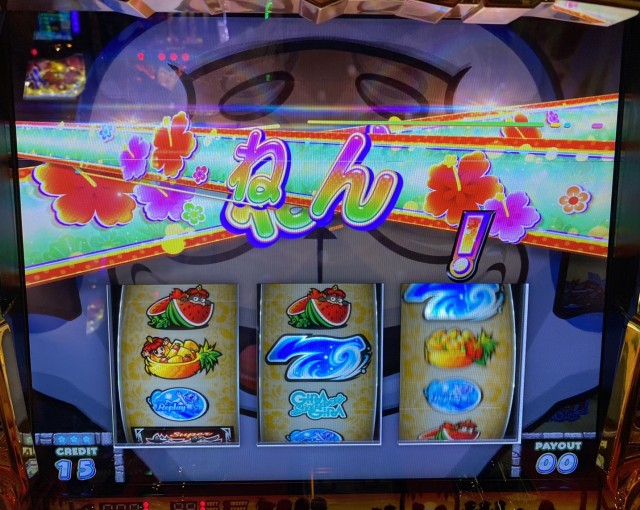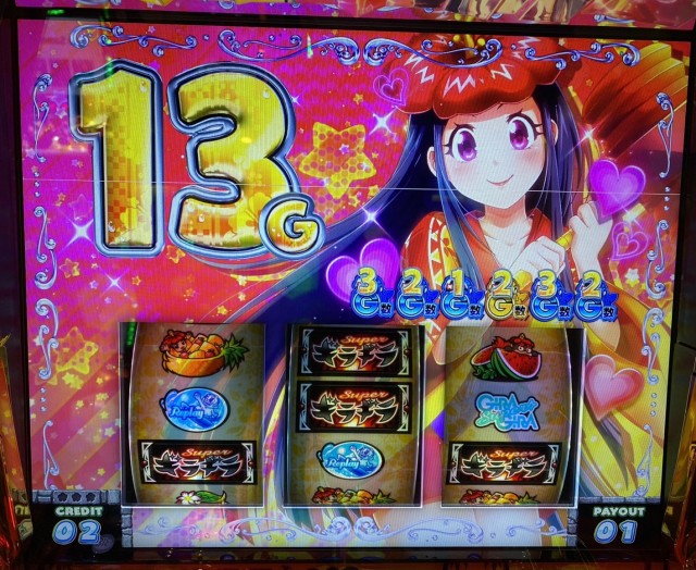 今、即ヤメすれば、ちょい勝ちで実戦終了となる。もし、私が賢いスロッターなら席を立ったかもしれない。今日は日が悪いと帰路についたかもしれない。だが、私は続行。