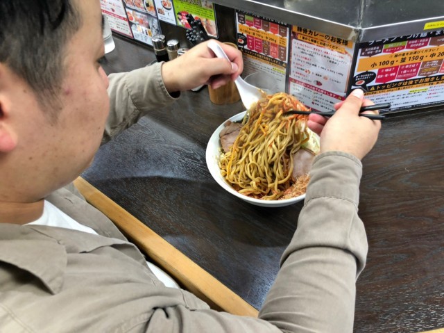 「とことんジャンク、しかも汁なしが好きなんで、ここではまぜそばを食べることが多いんすよ。22時までしかやってないんで、パチスロで負けて早めに切り上げる日によく来てますね。いつきでラーメンが食べられたと思えば、負けた日でも精神的収支はプラマイゼロにして帰れるじゃないすか」