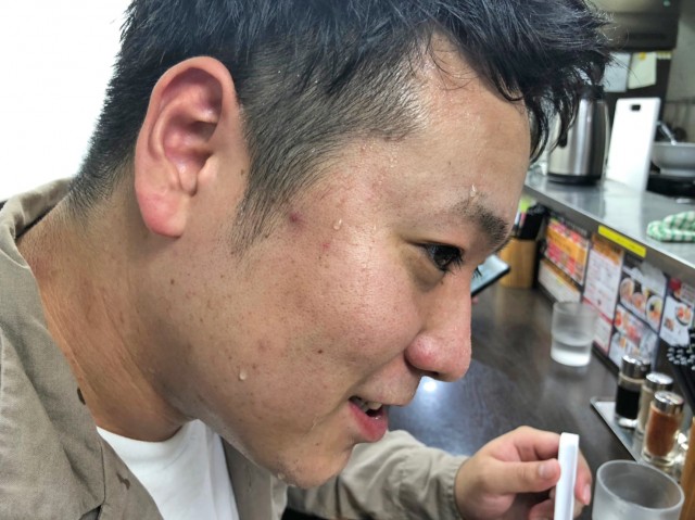 汗だくで麺をすすり続け、あっという間に完食してました。