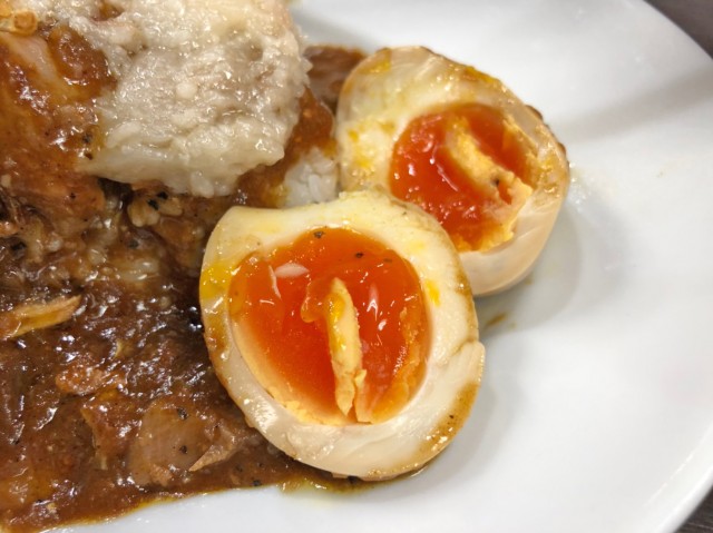 カレーの具は肉のみ。豚骨カレーというだけあってかなり濃厚。