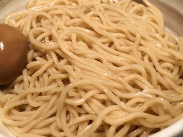 魚介の旨味がしっかり効いた濃いめのスープ。全然ギトギトしてなくて、程よい節のざらっとした感じに食欲が止まらなくなります。