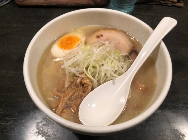 鶏白湯大好きな阿島は「鶏白湯 塩ソバ」(800円)をオーダー。こちらも鶏と塩のコクみが深くて沁みました~。麺がマジでプルップルのもっちもちですから。