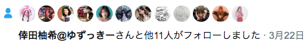 ゆずっきー(@yu_zukizuki)とかヤドゥ(@yadoo_max)とか忙しいのに当日中にフォロバしてくれて、マメなのも売れっ子になる秘訣なのかなと思ったり思わなかったりラジバンダリ。