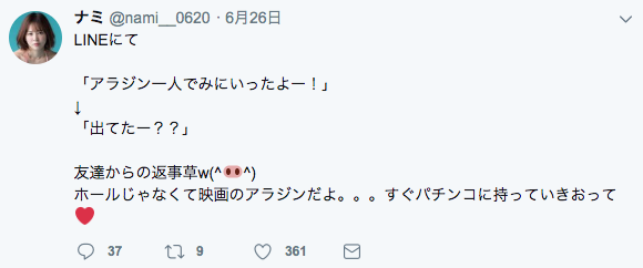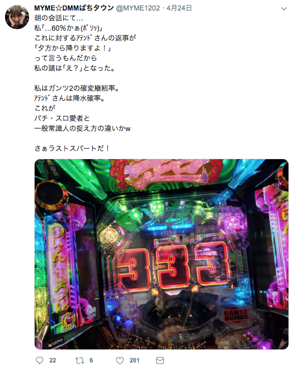 ナミ(@nami__0620)なら、1人で出玉状況を見にいったという報告をしてもおかしくない。そう思われているとも言えますね。
