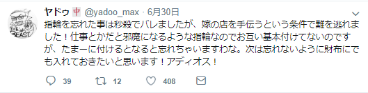 ちょっとしたスリルを楽しんでいるようで。ちなみに「奥さんは気づいているけど触れないだけ」というリプがちらほら。