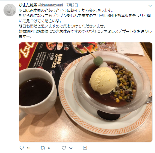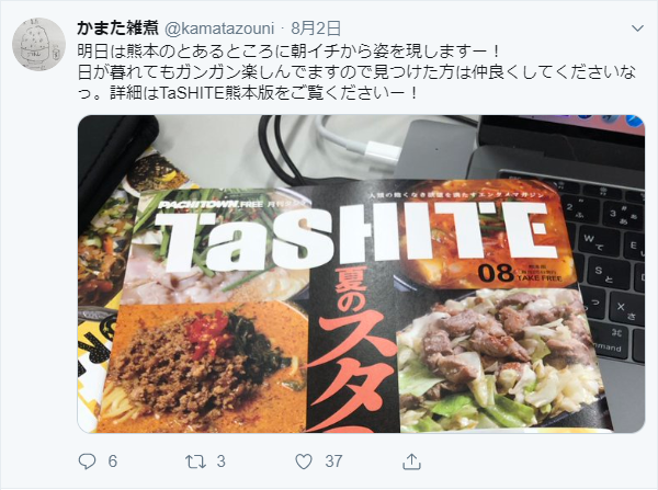 いつからそうだったのか過去をさかのぼって調べてはいませんが、7月のかまた雑煮(@kamatazouni)はずっと「TaSHTE」。DMMぱちタウンが出しているフリーペーパーの名前は「TaSHITE」。