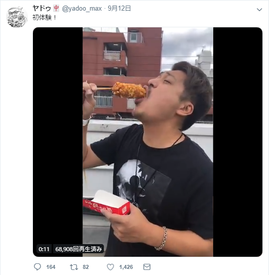 ヤドゥのチーズハットグ初体験。見ているだけで胸焼けしそうな動画ツイートです。↑の画像をクリックすれば見られますよ。