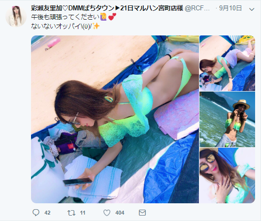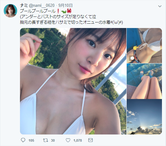 最近「パチンコライターナミ MEDAL NUDE」でグラビアに本格参戦したナミ。このツイートは胸と足の画像しかないですが、文豪のイチオシはお尻です。