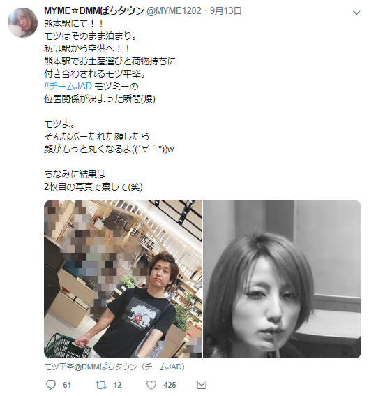 九州を中心に活動する「チームJAD」のメンバーMYMEとモツ平峯(@motsu_hiramine )。ガチ同級生の2人のとある日のツイートですが、同じ状況でもつぶやく人が違えば印象が全く異なりますね。