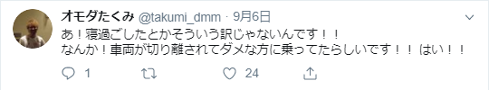 なんか! 車両が切り離されてダメな方に乗ってたらしいです! はい!