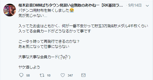 パチンコ用財布を無くした桜木彩音(@ayaayaayane9797 )。それにしても、玉とメダル貯めすぎじゃないですか?