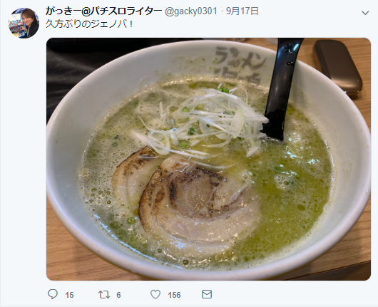 がっきー(@gacky0301)が食べたのは、福岡の名店「ラーメン海鳴」のジェノバラーメン。緑色!