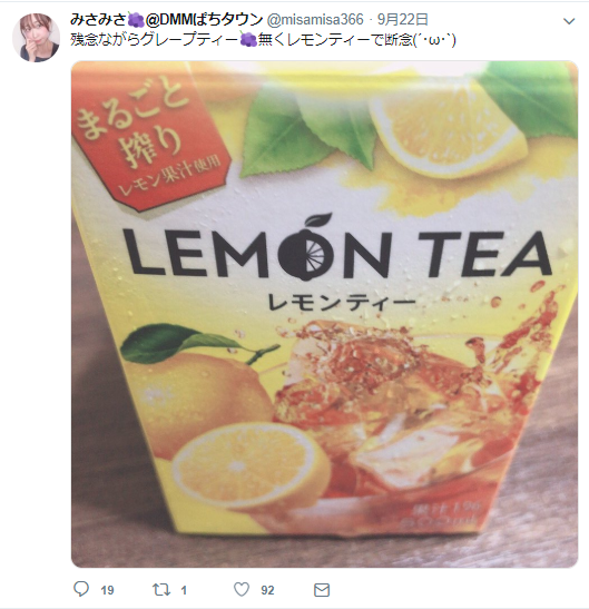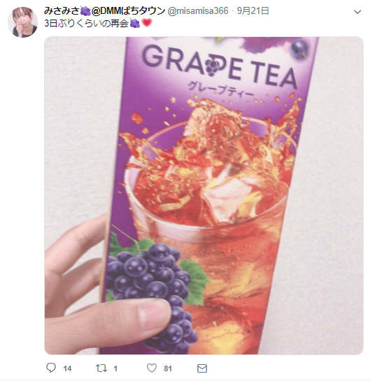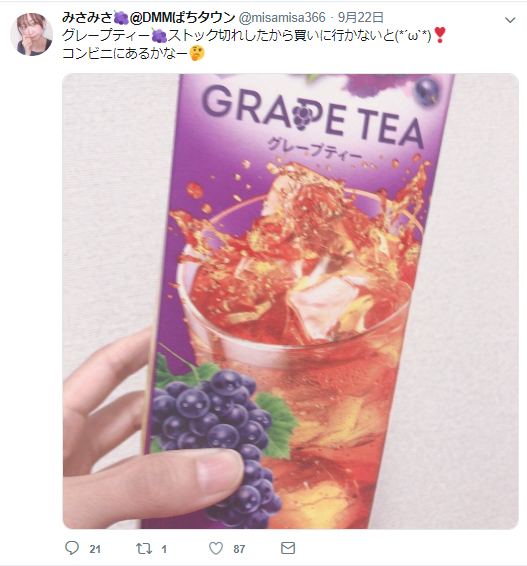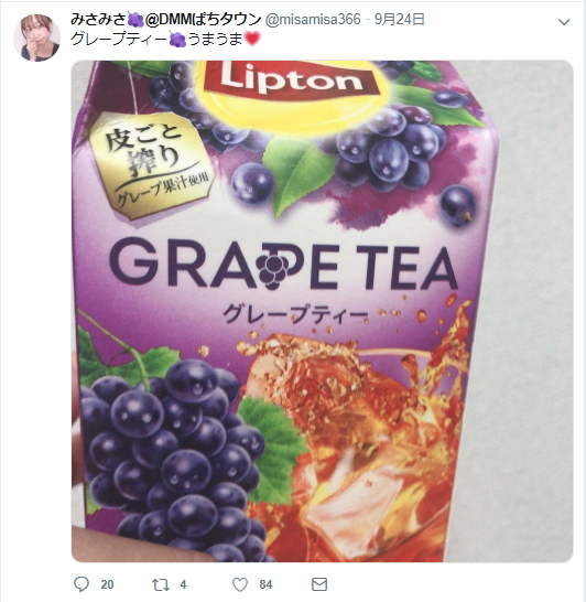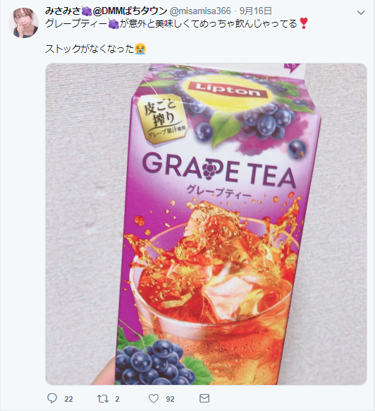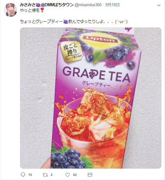グレープティーをめっちゃ飲んじゃっているみさみさ(@misamisa366)。
