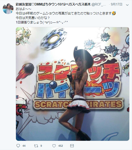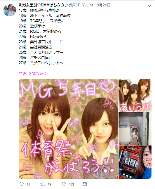 順風満帆だった女子高生活から一転、波乱万丈のヒストリーをつむぎ出している彩瀬友里加。地下アイドル、レースクイーン、会社員からのぱちタウン専属タレント。充実しているっちゃあしていますね。