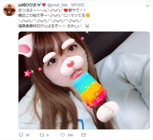 ついでに、珍しいすっぴんアイの山崎ひびき(@ymzk_hbk )も置いときますね。