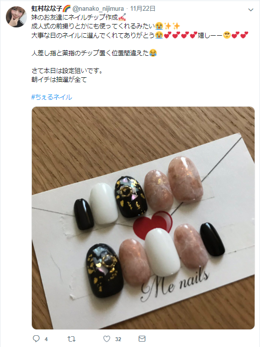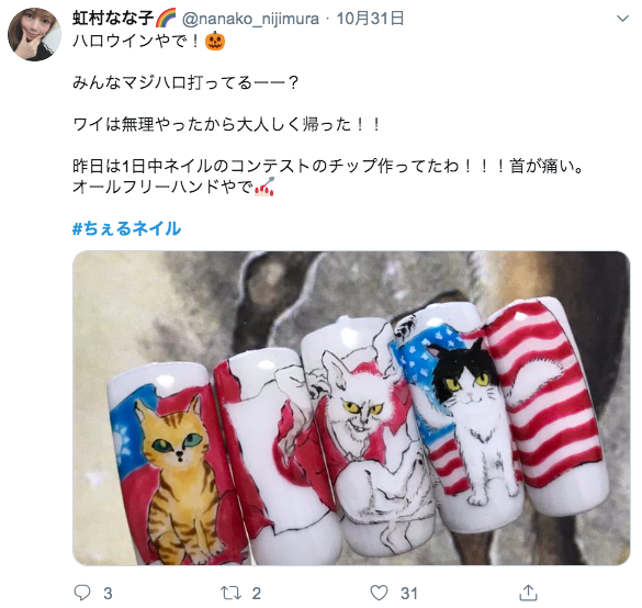 変わったところでは、ネイリストとして活動中の虹村なな子(@nanako_nijimura)。