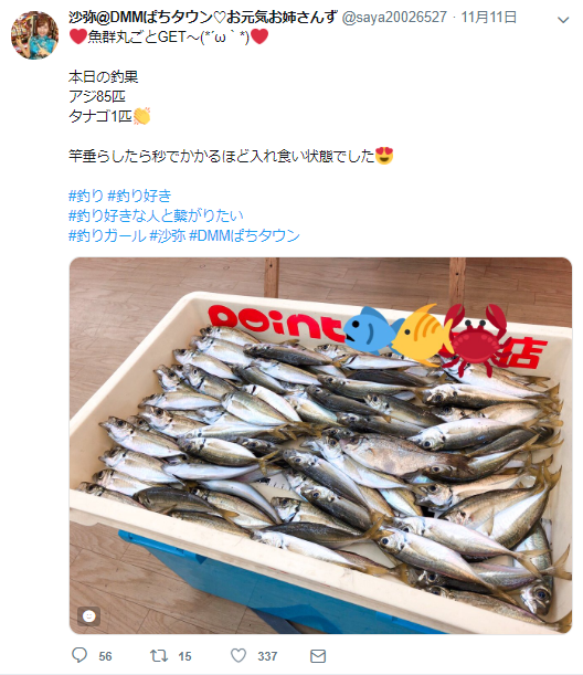 最後は、釣り人として活動中の沙弥(@saya20026527)。釣りすぎですね。