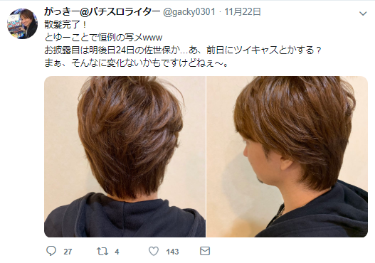 このツイートの影響か、早速散髪するがっきー。明依さん、これで大丈夫ですか?