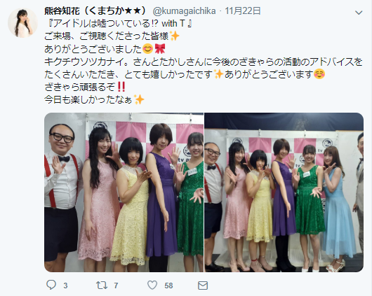 アイドル活動に忙しいくまちか(@kumagaichika)。阿佐ヶ谷姉妹と同じピンク担当なんですね。