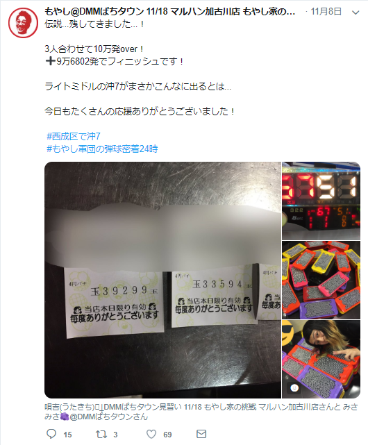 『CR沖7LM』で、3人合わせて10万発OVERですよ。ライトミドルでこの結果はうらやましすぎます…が、これだけじゃ終わらないんですね。
