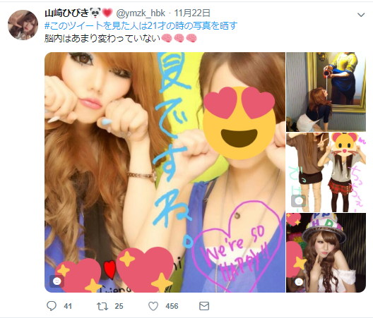 山崎ひびきの呼びかけで、何人かが21才の頃の写真を晒していましたよ。