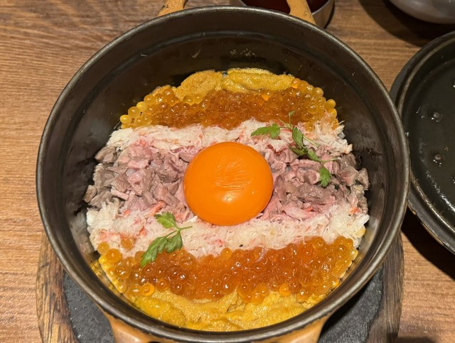 ウニと蟹とユッケといくらの混ぜご飯的なやつ