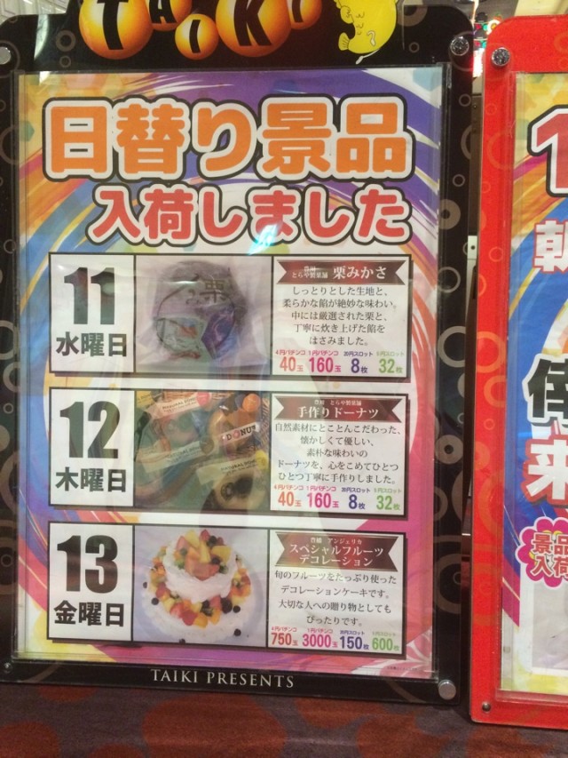 13日の日替わり景品は