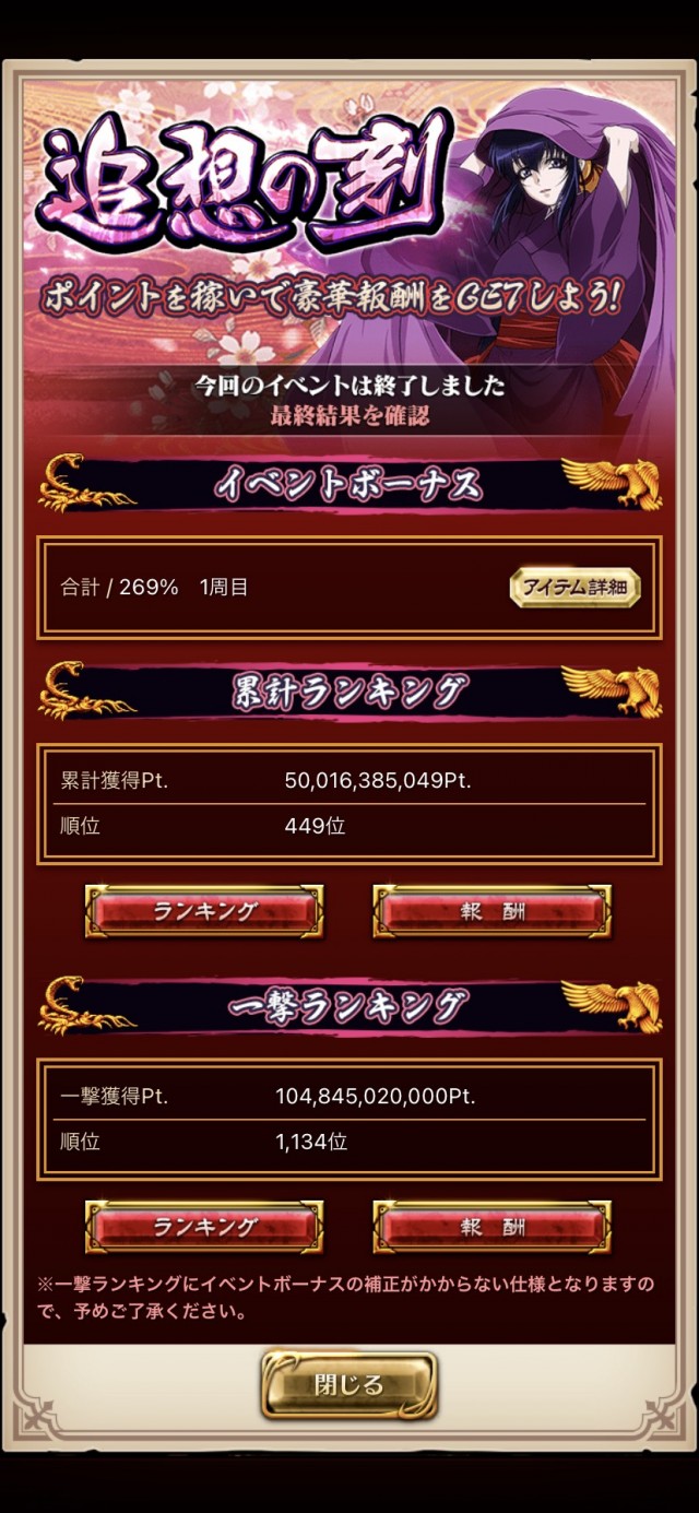 イベントボーナスは300%に届かず・・・